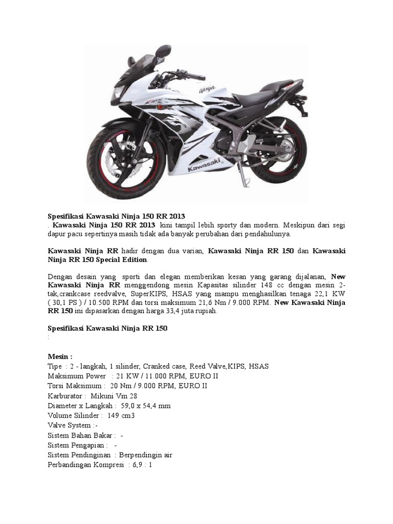 Spesifikasi Kawasaki Ninja 150 Rr 2013
